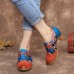 Retro Genuine Leather Folkways Hook Loop Buckle Strap Chunky Heel Pumps