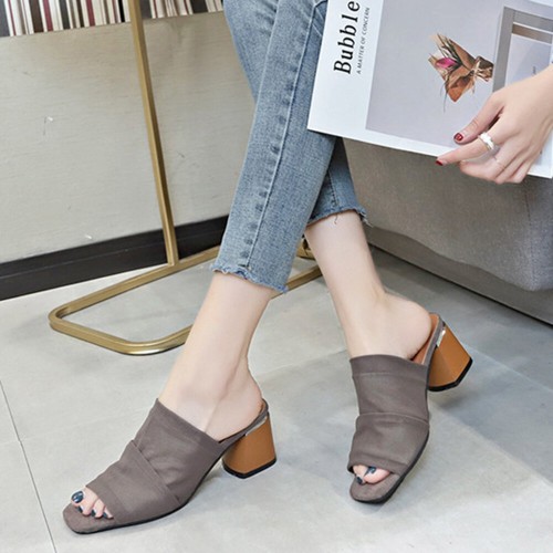 Women Peep Toe Mesh Solid Color Chunky Heel Pumps